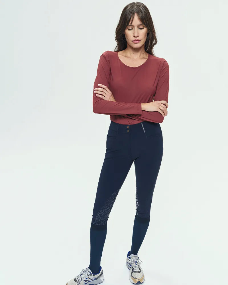 - T-shirt technique d'équitation à manches longues au design épuré, parfait pour les cavalières recherchant élégance et performance.