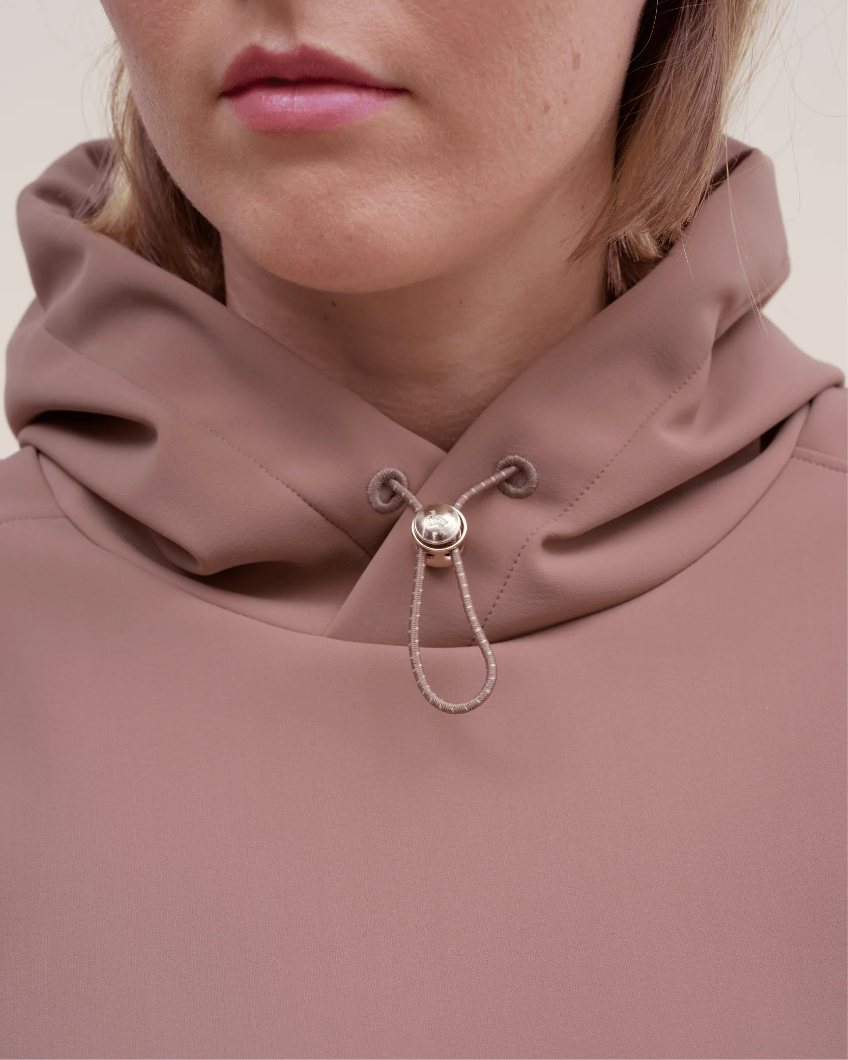 - Capuche réglable avec cordon élastique ton sur ton et stoppeur en métal doré