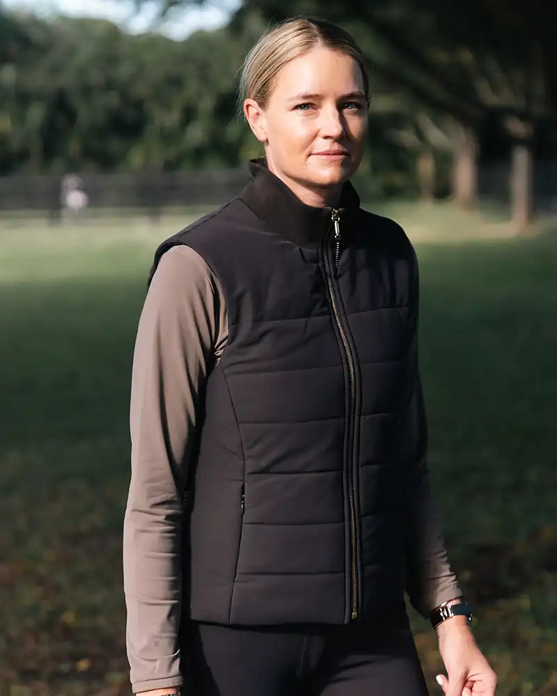 Entièrement matelassée, la doudoune Delaunay sans manches accompagne le quotidien de la cavalière pour offrir un maximum de confort et de chaleur.