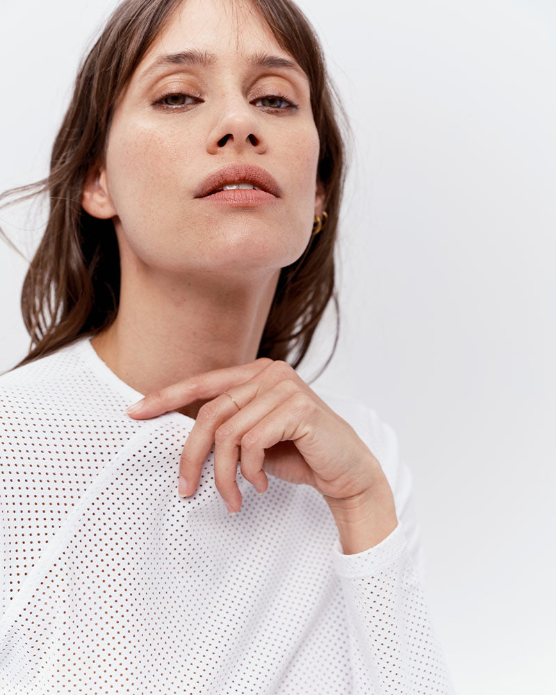 - Tissu technique micro-perforé et dense : évite la transparence tout en restant léger et confortable.