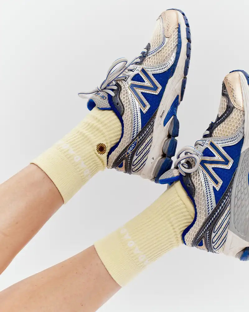 Les chaussettes de l’été selon Dada : légères, douces, pleines d’esprit. À glisser dans ses baskets, entre deux sessions à cheval. Le détail en plus : de jolies broderies fines, comme des lucky charms – petites bottes de carottes, tête de cheval, tournesol ou trèfle à 4 feuilles.