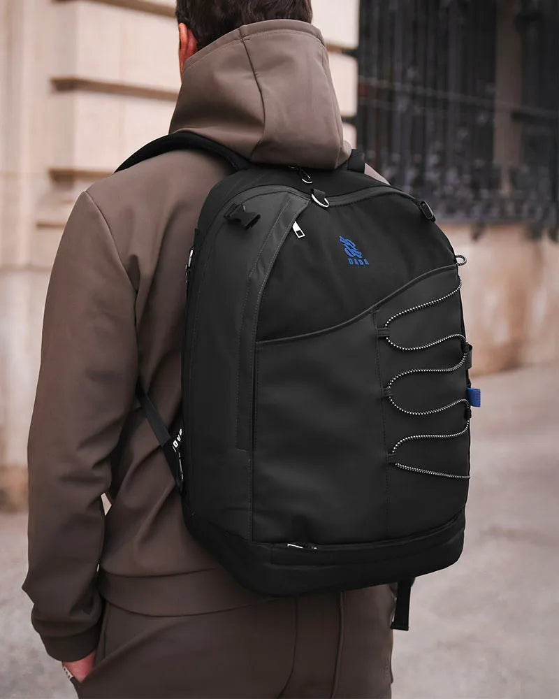 - Filet casque intégré : se fixe avec deux clips et se range dans le fond du sac.