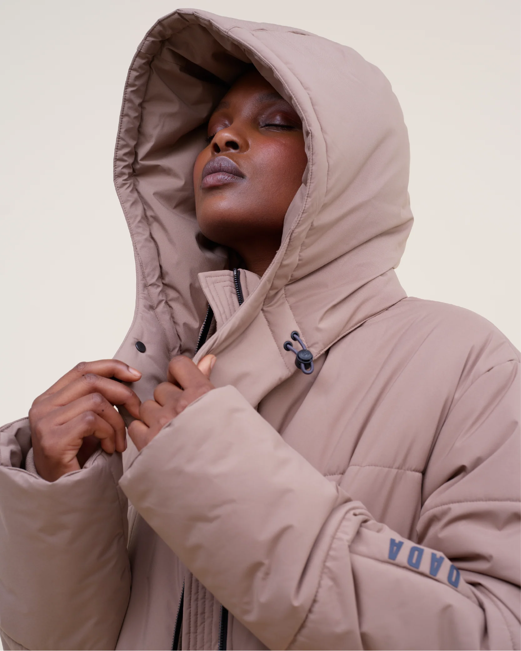 - Capuche amovible maintenue par des boutons pressions. Cordons élastique de serrage fermé par des stoppers noirs mats
