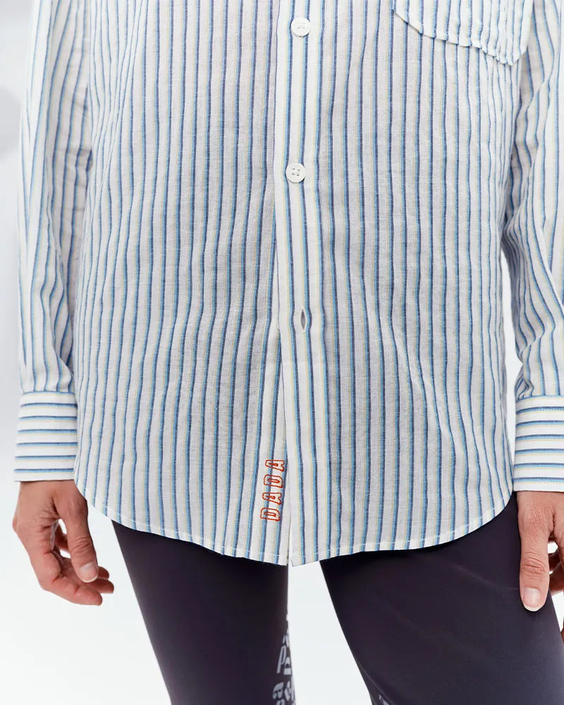 - Rayé bleu ciel : coton d’exception issu des stocks dormants des plus grands créateurs du luxe français.